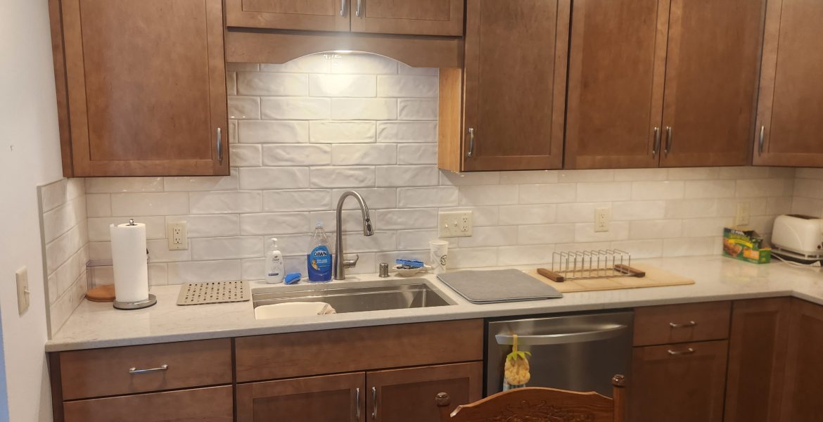 – Installed new cabinetry (Kemper in Maple Sahara), countertops (Quartz, Mackinaw), appliances, and plumbing