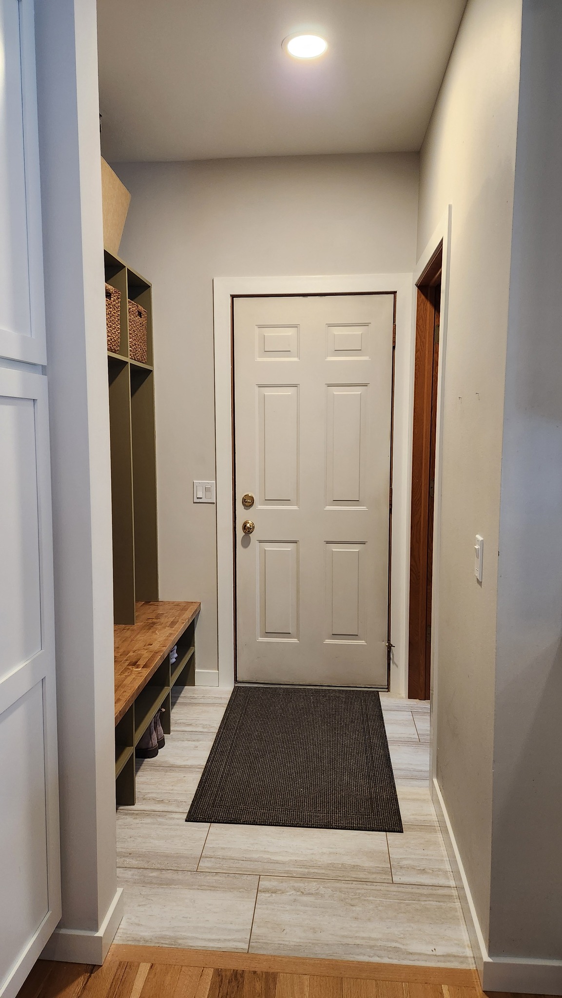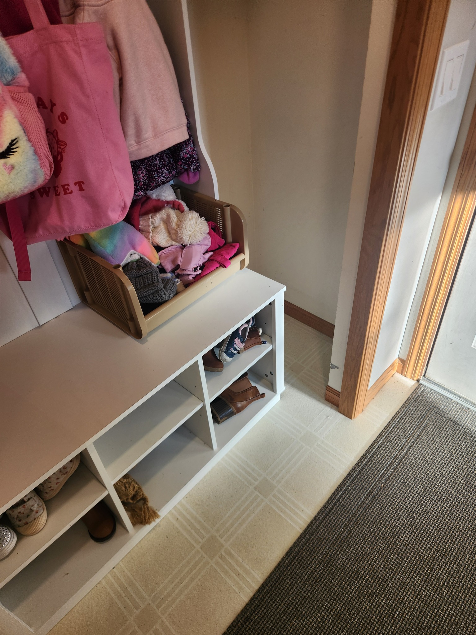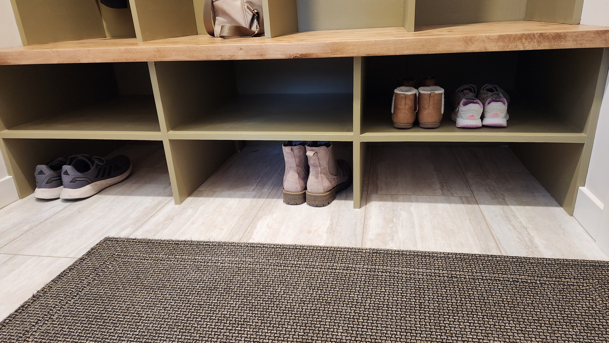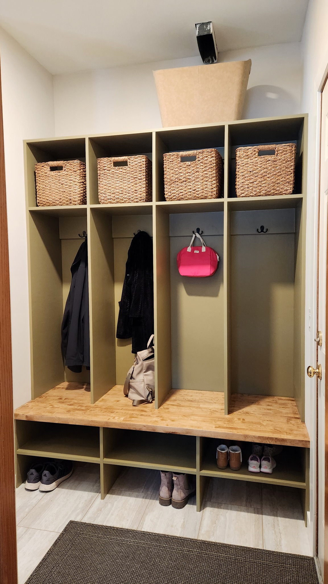 What a great functional transformation! The new space looks like it has always been there and now the family has plenty of space for shoes, coats & backpacks!